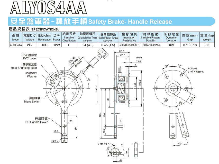 台湾仟岱电磁式断电刹车器(代步车系列)