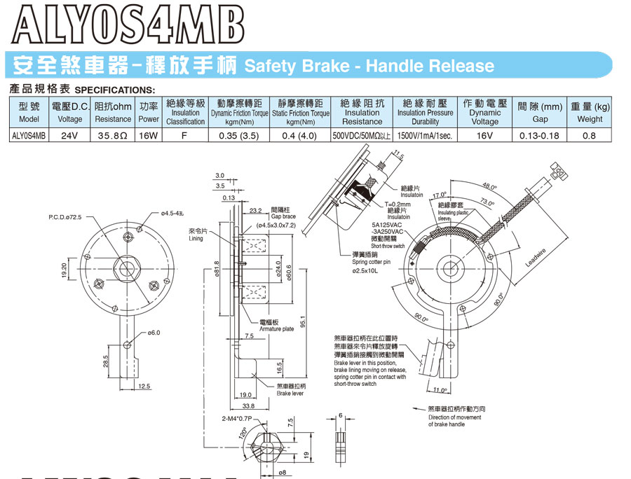 台湾仟岱电磁式断电刹车器(代步车系列)