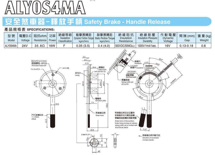 台湾仟岱电磁式断电刹车器(代步车系列)